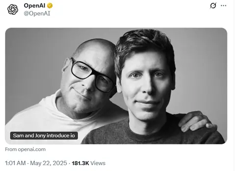 OpenAI在官网发文欢迎io的加入。
