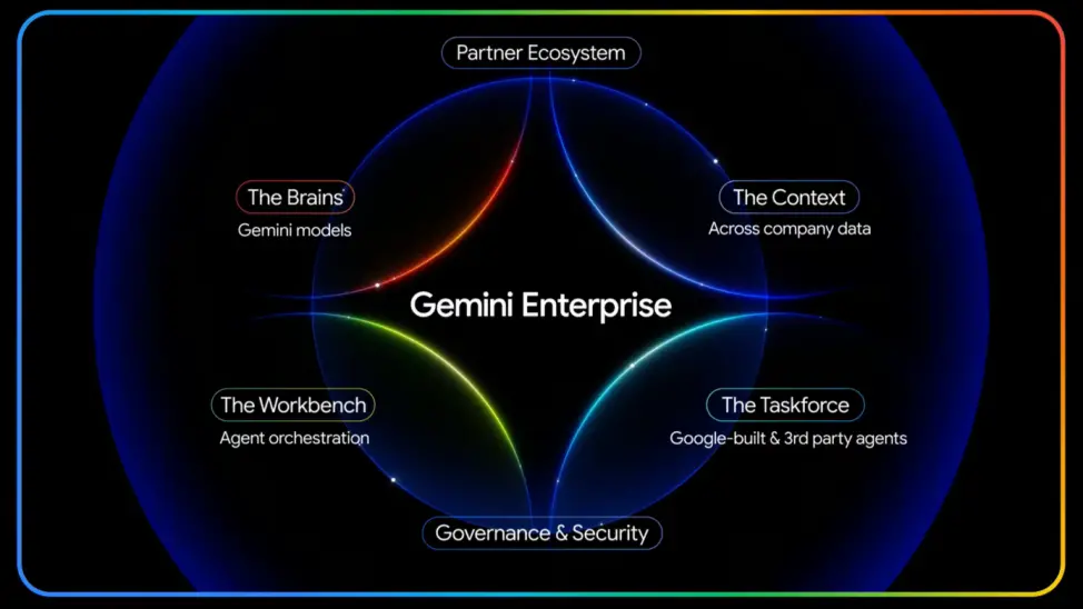 谷歌云CEO托马斯·库里安(Thomas Kurian)将Gemini企业版定义为一个统一了六大核心组件的端到端平台,而非一个孤立的应用: