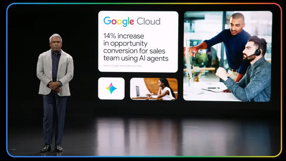 在Google,我们也在使用Gemini改造自身的企业运营。我们的供应链团队正在使用Gemini来审查和为我们的基础设施供应商创建业务连续性计划,并且速度快了很多,自我们发布以来,年同比速度几乎提升了14倍。我们的营销活动效率大幅提高。2025年,借助我们在Vertex AI上构建的活动代理,Google Cloud的市场人员在活动执行上节省了近18,000小时。我们的云销售团队在为期六周的时间里,在预售流程中使用AI Agent,将潜在客户转换为商机的转化率提升了14%。我们也在改造我们的后台运营。改造自身业务带来的洞见直接影响我们为您带来的功能路线图,确保该计划经过实战检验,安全,并为您的企业做好准备。